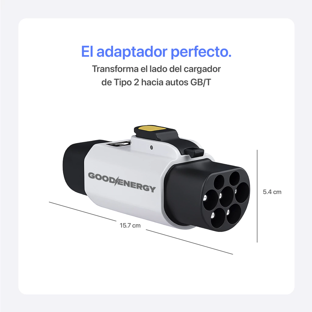 Conecta tu vehículo eléctrico BYD, JAC u otro modelo con conector GB/T a estaciones de carga Tipo 2 de forma rápida, segura y confiable. Este adaptador de alta calidad está diseñado para brindar protección certificada IP54, soportando agua, polvo y sobrecalentamiento, lo que lo hace ideal para uso en exteriores y viajes largos.