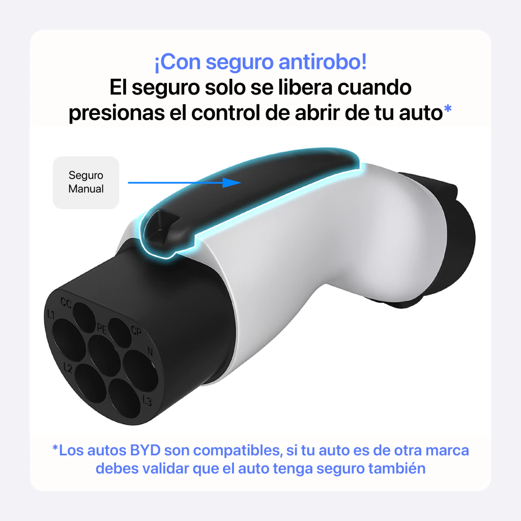 | Compatibilidad | Vehículos eléctricos BYD, JAC y otros con puerto GB/T |