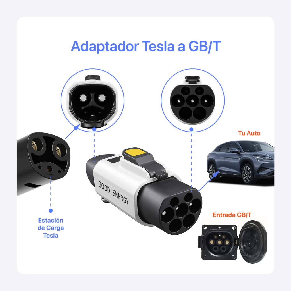 Conecta tu vehículo eléctrico BYD, JAC u otro con conector GB/T a estaciones de carga Tesla NACS de forma rápida, segura y eficiente. Este adaptador compacto y resistente está diseñado para soportar hasta 32 amperios, ofreciendo una carga estable y confiable en cualquier entorno.