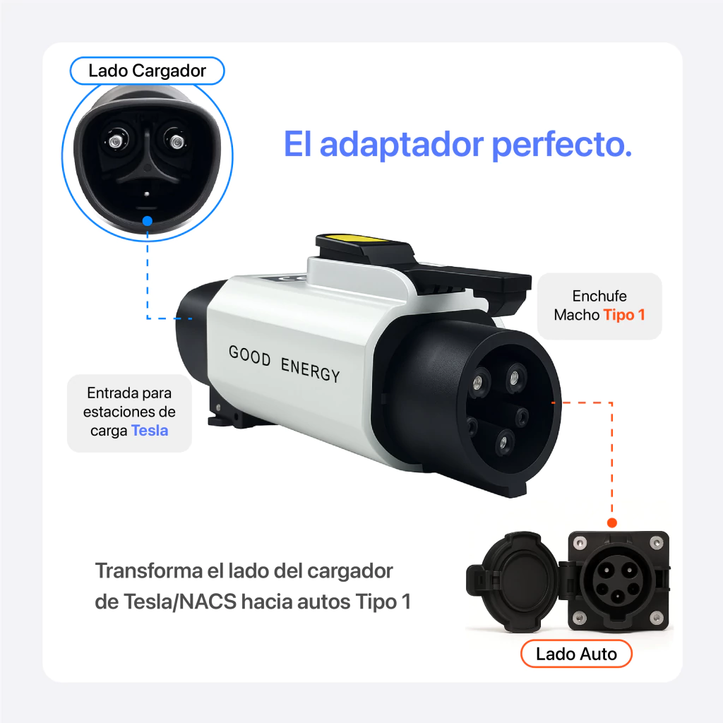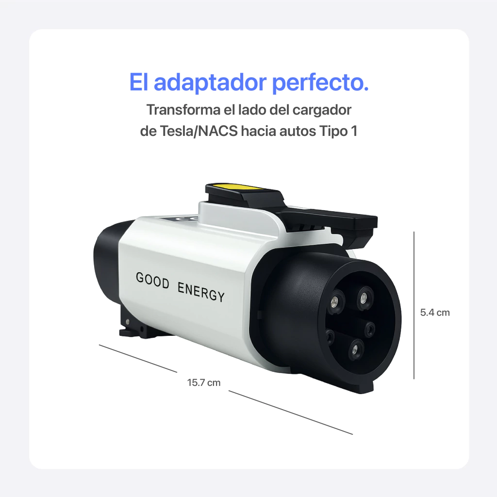 Conecta tu vehículo eléctrico TIPO 1 u otro con conector J1772 a estaciones de carga Tesla NACS de forma rápida, segura y eficiente. Este adaptador compacto y resistente está diseñado para soportar hasta 50 amperios, ofreciendo una carga estable y confiable en cualquier entorno.