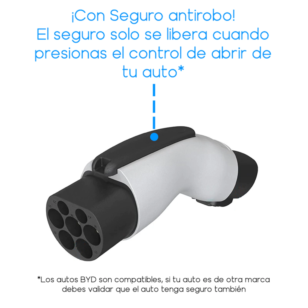 ¡CONECTATE EN PLAZAS Y CENTROS COMERCIALES! Con este paquete de adaptadores TESLA y TIPO 1 a GBT, ambos con seguro antirrobo, resistente al agua y la mejor calidad con una velocidad de carga de hasta 7.5 KwH ( dependerá del centro de carga).